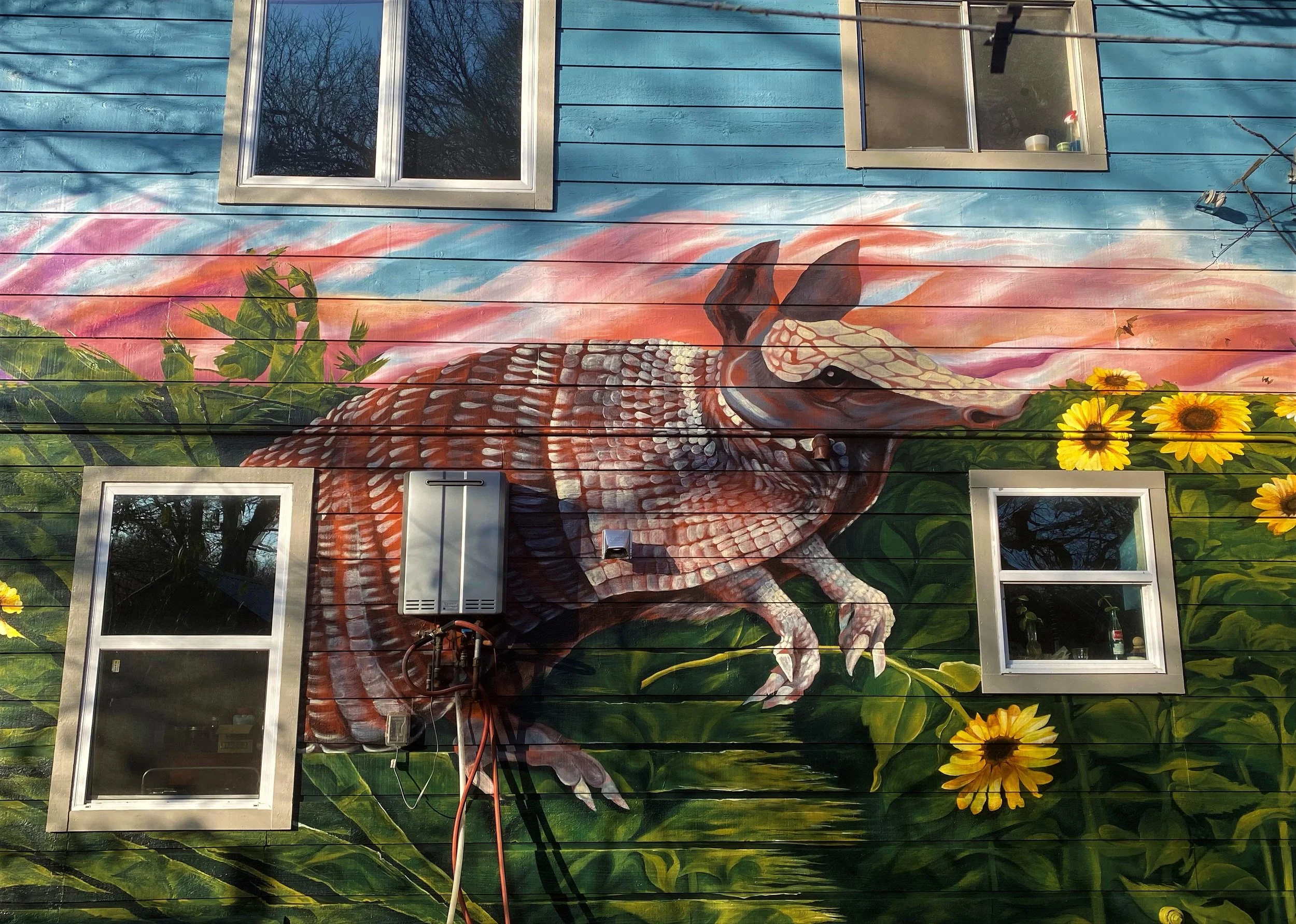 Acrylic paint on wood siding at private residence in Austin, TX.